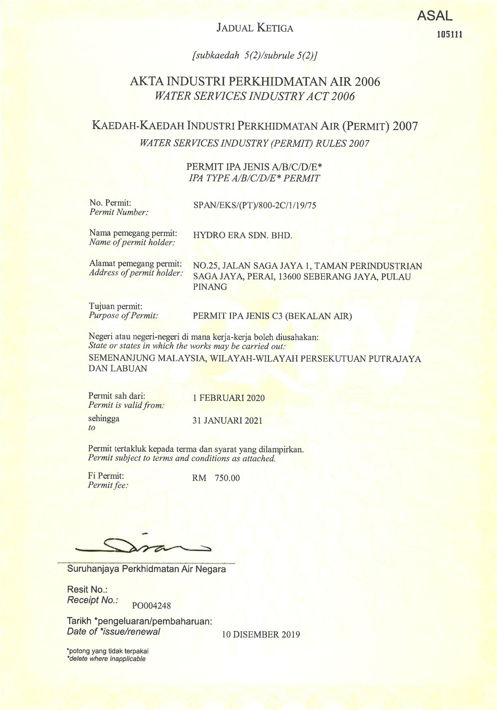 Hydro Era is officially appointed by EBARA Pump Malaysia as the authorised dealer for EBARA standard pumps in the state of Penang, operating as EBARA 3S CENTRE (Sales, Service and Spare Parts), providing a “One-Stop’ service centre for all your EBARA Pumping needs.